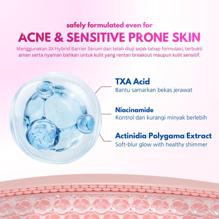 • Mengandung 3x Hybrid Barrier Serum & Complexion: Kombinasi Swiss-grade Niacinamide untuk mengontrol sebum dan menjaga hidrasi